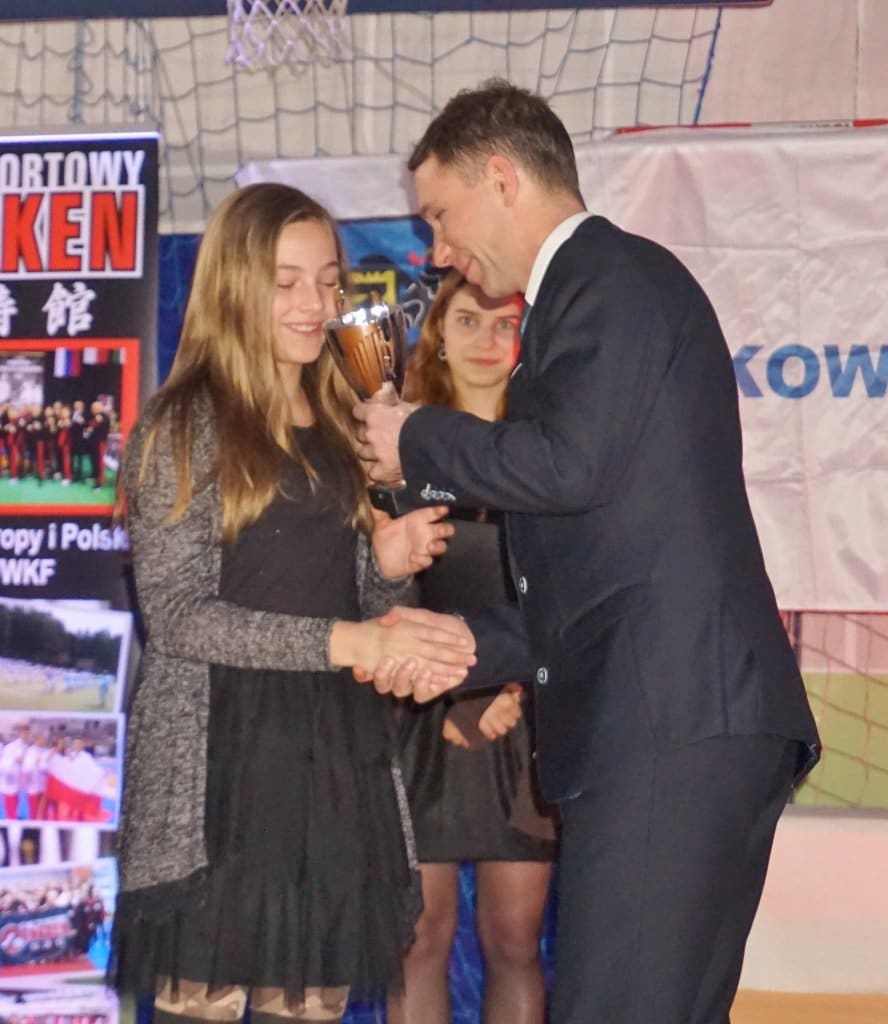 Widzowie obejrzeli także film o zawodnikach KS Gokken i pokaz karate przygotowany przez najmłodsze zawodniczki klubu. W kolejnym punkcie Piotr Fikus, jako przedstawiciel powiatu kartuskiego, wręczył specjalne wyróżnienie Adamowi Stępskiemu.